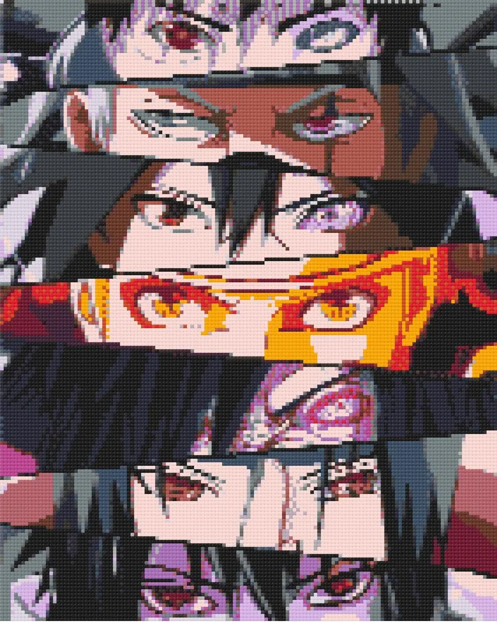 Відчуйте силу великих кланів шинобі, створюючи власний шедевр із набором для алмазної вишивки «Сила очей». Цей сюжет об’єднує в собі містичну естетику Шарінґана, Ріннеґана та Б’якуґана, роблячи процес викладання стразів справжнім зануренням у всесвіт Наруто.