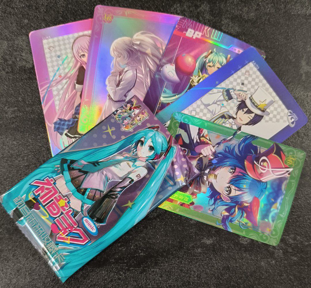 🃏 Колекційні картки з популярними віртуальними персонажами Vocaloid — Хацуне Міку, Кагаміне Рін і Лен, Мегуріне Лука, Кайто, Мейко та інші.