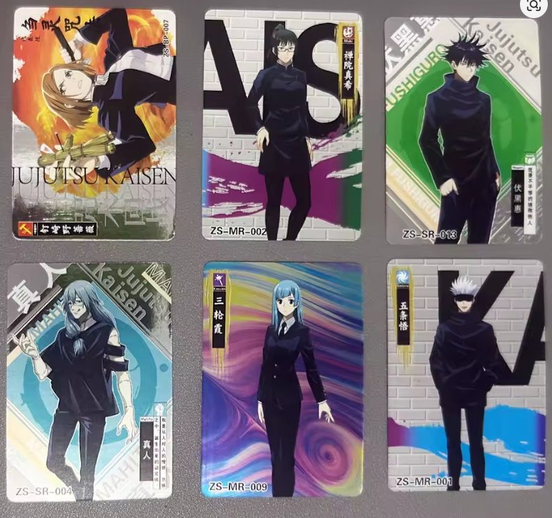 🃏 Колекційні картки з персонажами популярного аніме Jujutsu Kaisen — Ітадорі Юджі, Ґоджо Сатору, Меґумі, Нобара та інші.