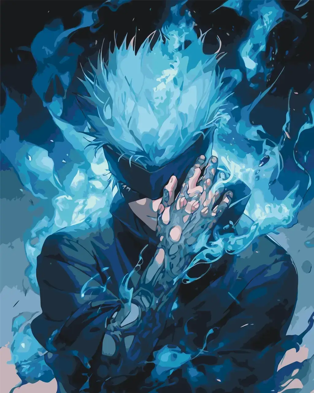 Культовий образ: Дизайн картини фокусується на деталях, які роблять Годжо особливим — його сріблястому волоссі, стильній пов’язці та магічній енергії навколо.