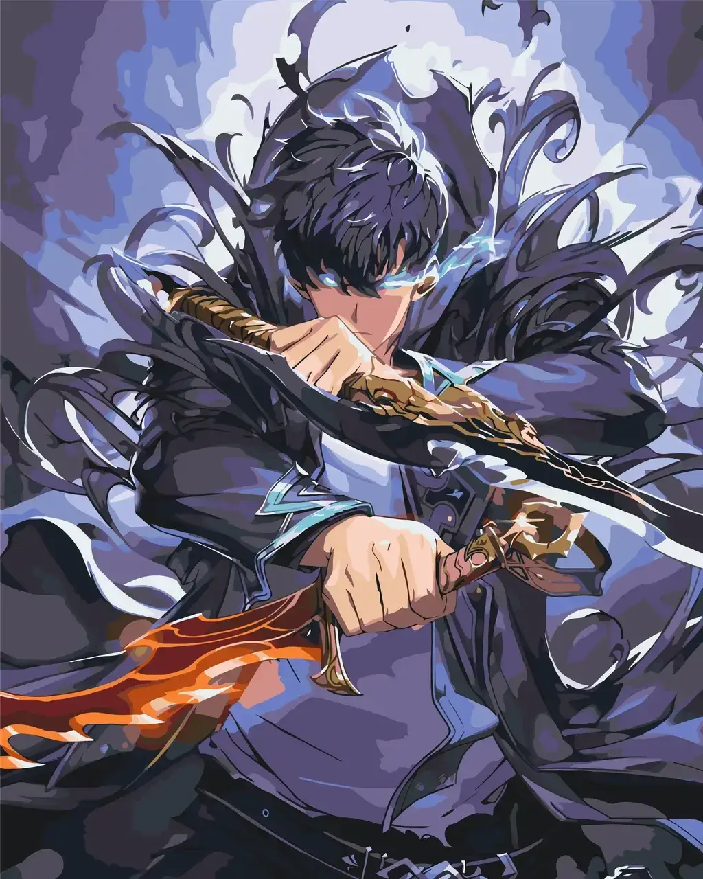 Відчуйте силу Тіньового Монарха у своїх руках! Картина за номерами Solo Leveling дозволяє кожному фанату манхви та аніме створити професійний арт, де головний герой Сон Джин Ву постає у всій своїй величі. Це ідеальний спосіб зануритися у світ підземель та магії, крок за кроком оживляючи легендарного мисливця на полотні.