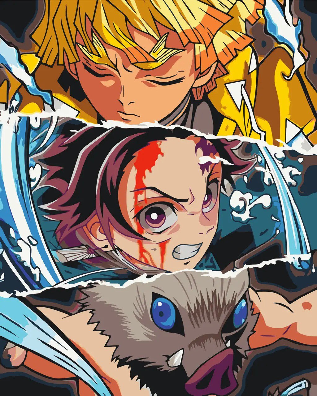 Занурся у світ «Клинка, що знищує демонів» разом із цією унікальною картиною за номерами! Зображення очей Іноске, Танджіро та Зенітсу передає характер і силу кожного героя. Ідеальний варіант для творчого відпочинку та прикраси кімнати фаната аніме.