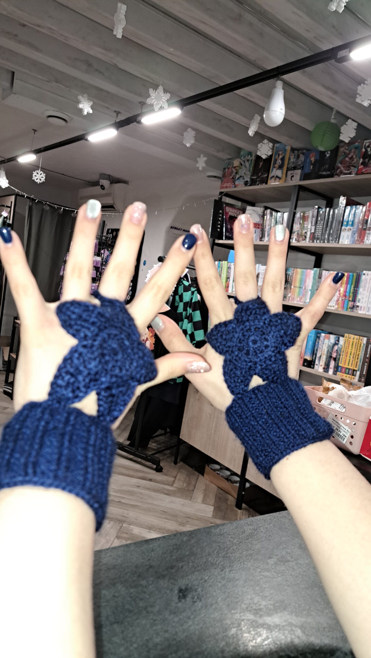 Унікальний дизайн: Головна фішка — велика в’язана зірка на тильній стороні долоні, яка створює впізнаваний силует у стилі японської вуличної моди.