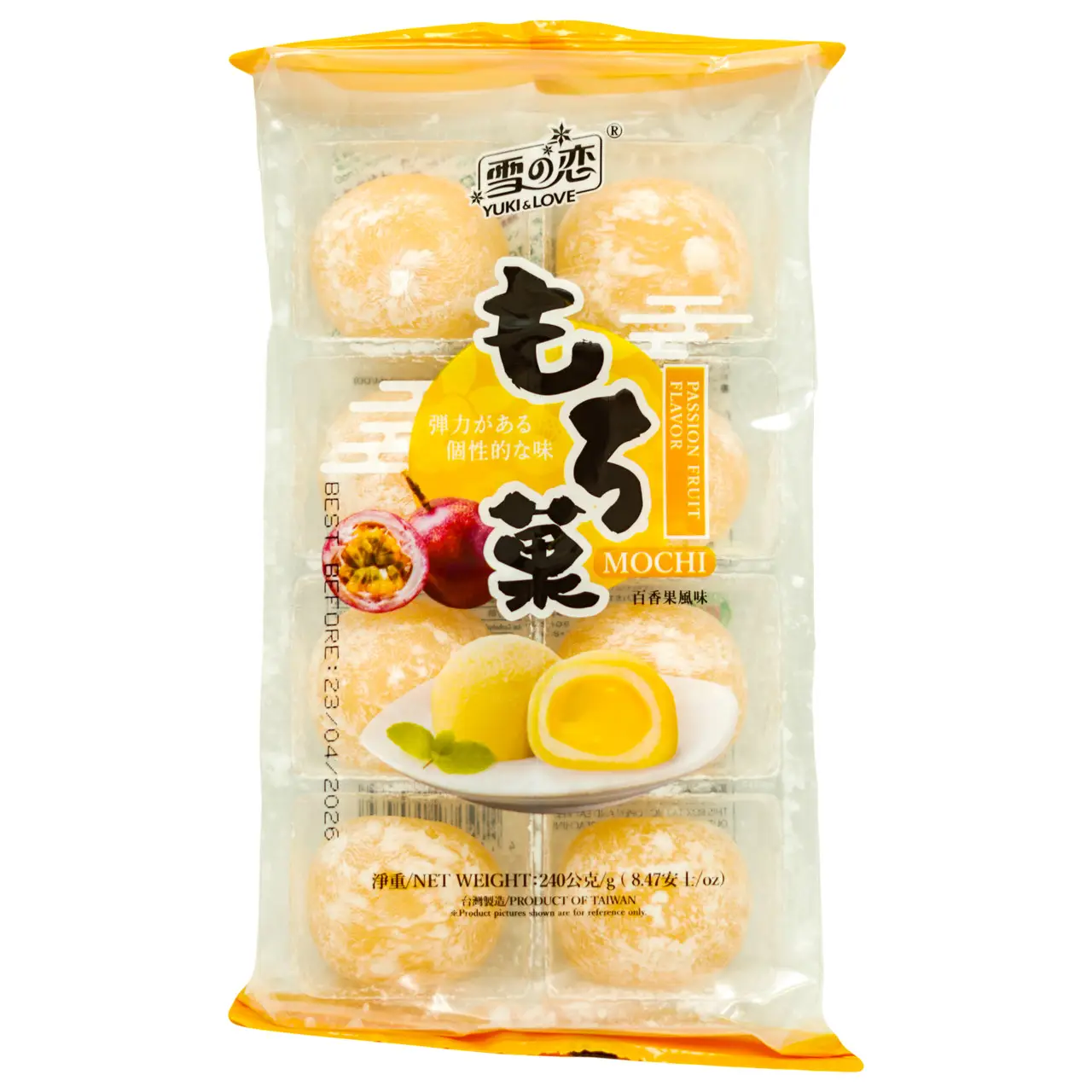 Мочі Passion Fruit Flavor YUKI&LOVE – це м’які кульки традиційного японського десерту мочі з ароматною начинкою зі смаком маракуї. Вони поєднують ніжну текстуру та освіжаючий тропічний смак, створюючи екзотичний і насичений десерт. Ідеальні для любителів азійських солодощів та фруктових новинок.