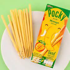 POCKY – найпопулярніший і відомий японський солодкий снек, і не дарма! Ці бісквітні палички покриті чудовою глазур’ю зі смаком манго. Кінці паличок залишені без глазурі, тому ви не забрудните пальці під час їжі. Назва «Pocky» походить від звуку, який видають ці хрусткі палички, коли їх їдять.