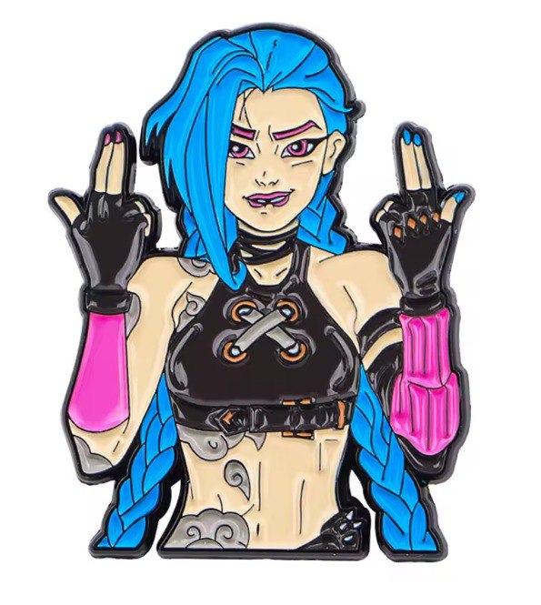 Атмосферний, яскравий та з характером — цей металевий пін натхненний образом Джинкс з Arcane. Він передає хаотичну естетику персонажа: насичені кольори, енергійний дизайн та стильну деталізацію. Ідеально підійде для фанатів Джинкс, колекціонерів, а також як акцент на рюкзаку, куртці чи пеналі.