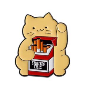 Металеві піни з кумедними котиками в оригінальному стилі, де пухнастики зображені у поєднанні з темою куріння. Незвичайний дизайн робить ці значки стильним аксесуаром для одягу, рюкзака, сумки чи кепки. Вони виконані в яскравих кольорах, мають чіткі контури та гладке емальоване покриття. Ідеально підходять для колекціонерів, любителів незвичного гумору та тих, хто цінує оригінальні дрібні аксесуари.