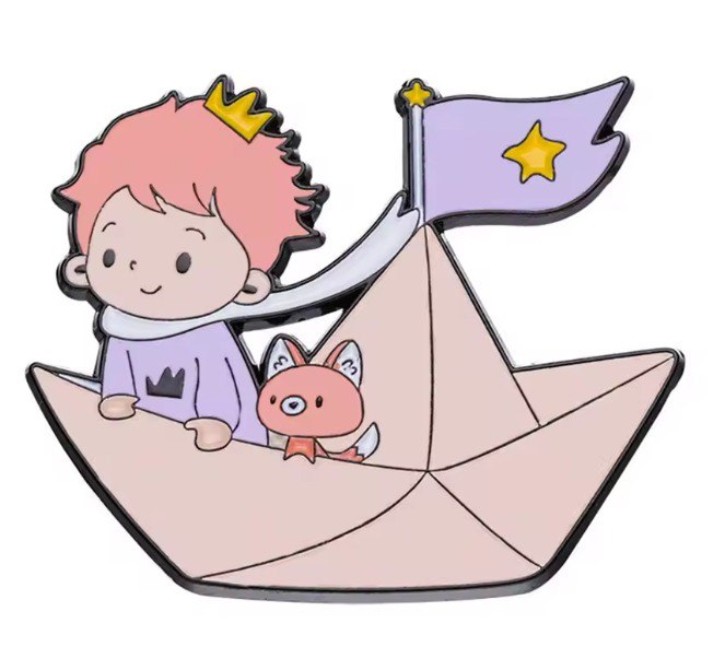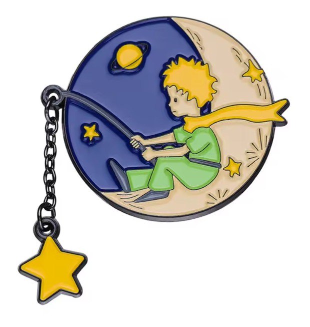 Ці чарівні металеві піни натхненні філософською повістю “Маленький Принц” (Le Petit Prince). Піни виконані у м’якому, казковому стилі, зображаючи Принца з його Лисом, корабликом з паперу та на небесних світилах. Вони ідеально передають поетичну красу та мудрість цієї історії, додаючи вашому образу мрійливості та ностальгії.