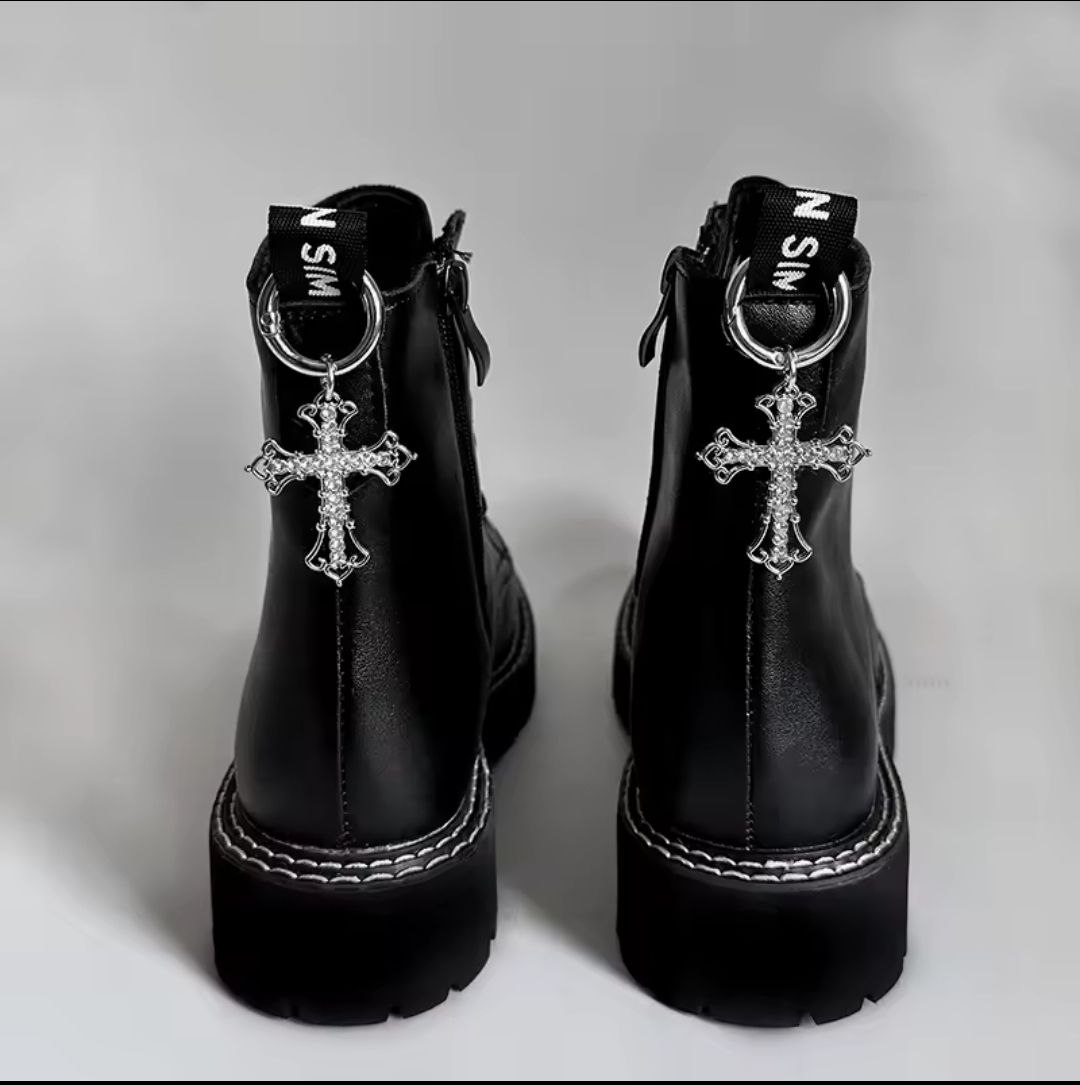 Ця пара хрестів — маст-хев для тих, хто любить деталі з характером. Вони надійно фіксуються на шнурівці, створюючи виразний візуальний акцент, що привертає увагу до ваших кроків.