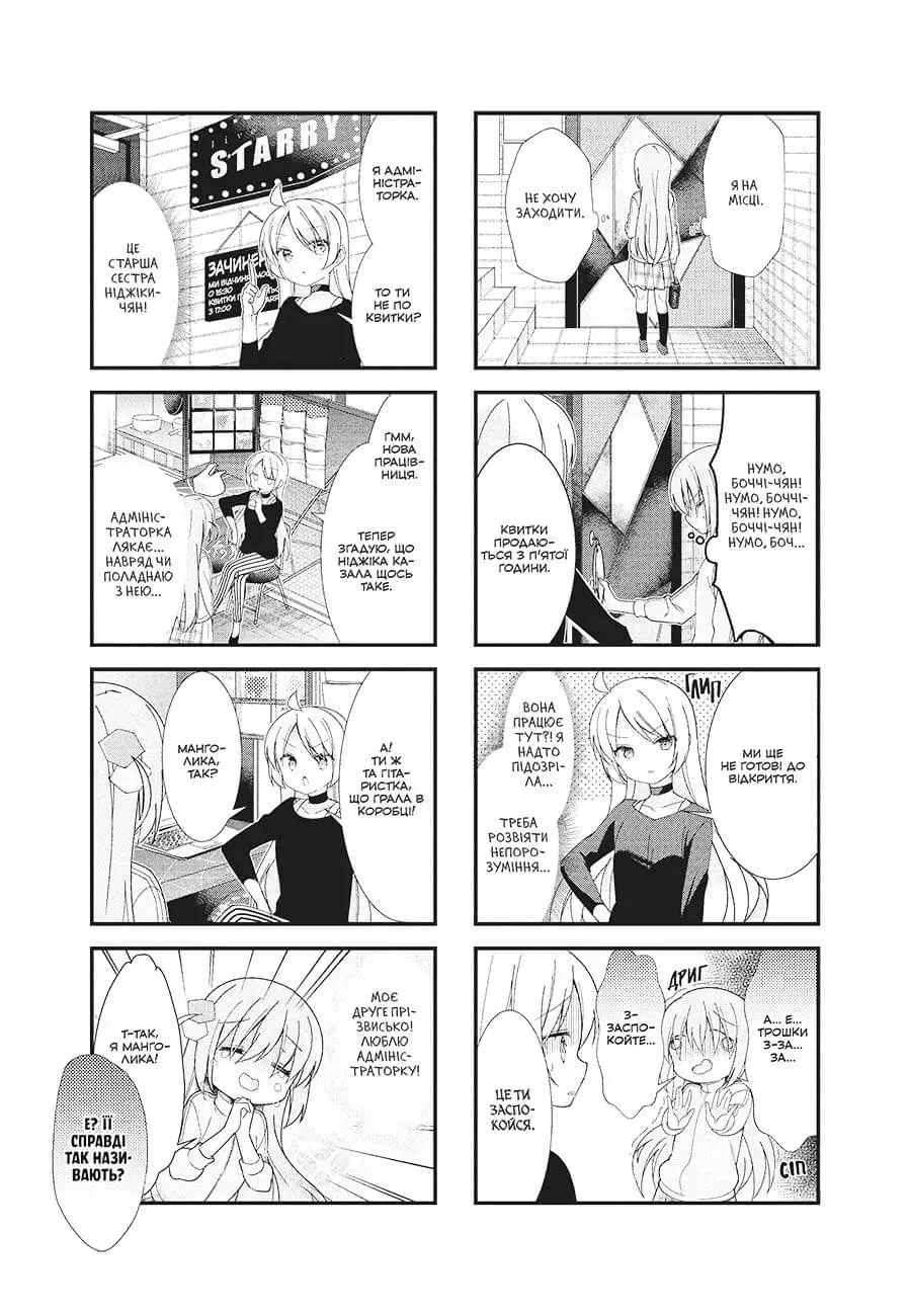 «Самітниця-рокерка. Том 1» — яскрава музична манґа з елементами комедії та повсякденного життя. Історія розповідає про сором’язливу дівчину, яка мріє стати рок-музиканткою, але має труднощі зі спілкуванням і соціальною взаємодією.