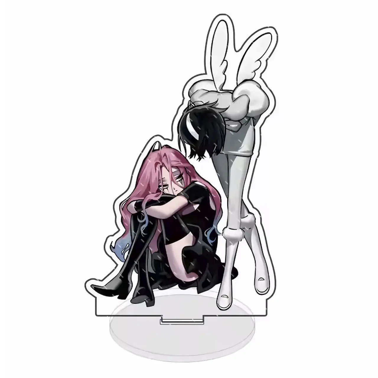 Стильний акриловий стенд по Alien Stage, на якому зображено двох персонажів у впізнаваному фірмовому арт-стилі проєкту. Якісна поліграфія, насичені кольори та чіткі лінії роблять стенд чудовою прикрасою для робочого столу, полиці чи колекції фанатського мерчу.