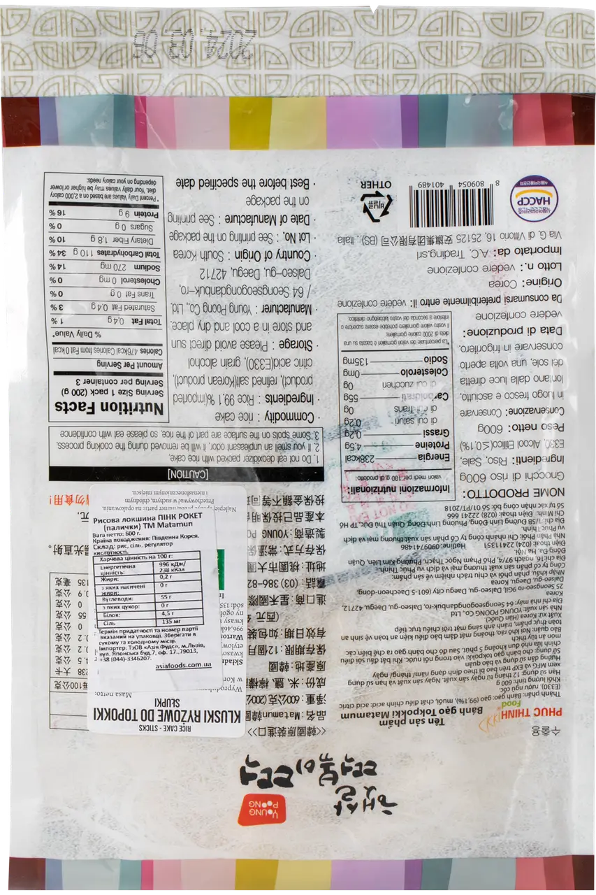 Назва продукту Токпокі рисові палички MATAMUN 600 г