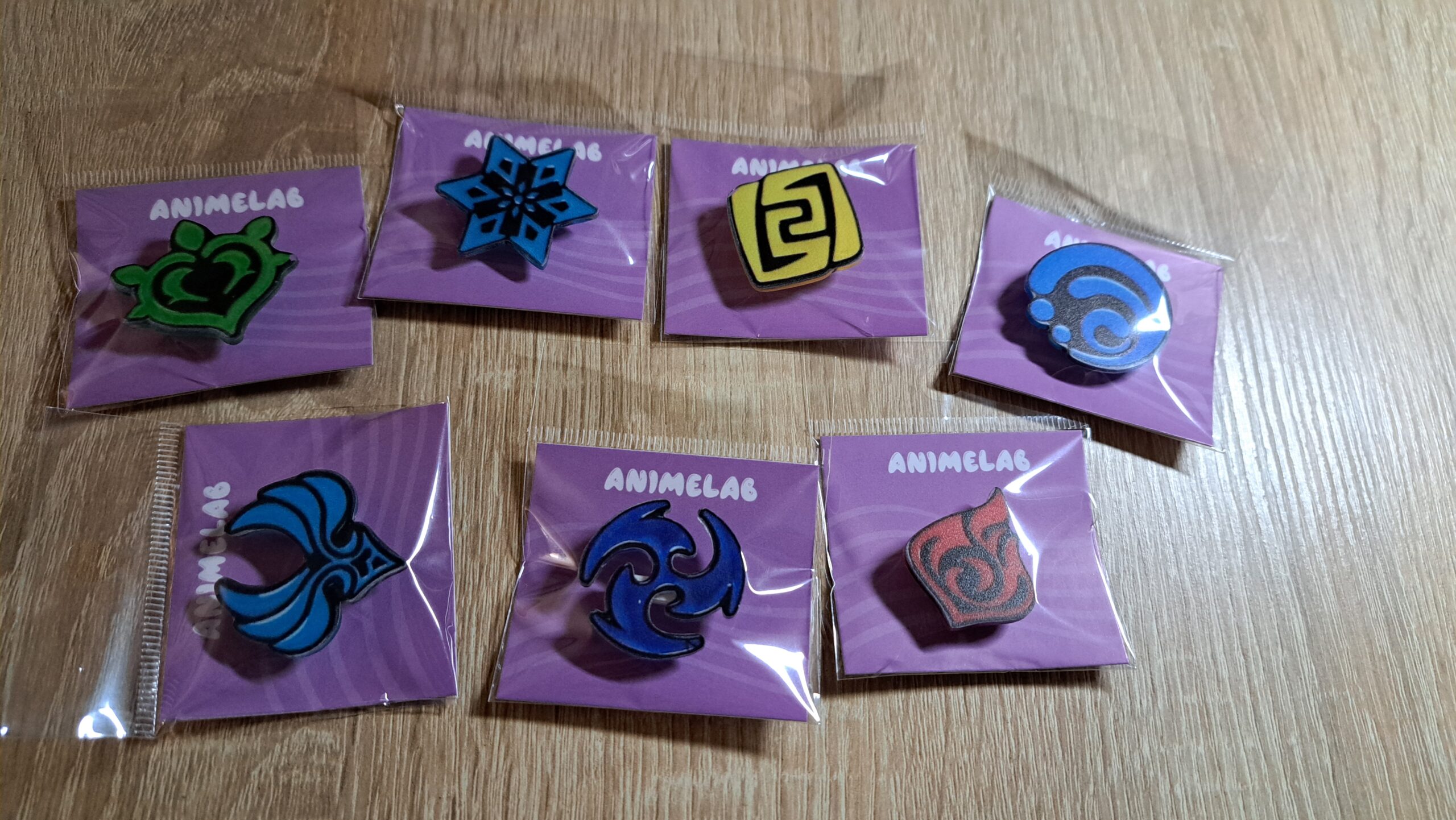 Відчуйте силу елементів у своїх руках! Ця серія значків присвячена головним магічним силам світу Genshin Impact. Незалежно від того, чи є ви володарем Анемо-ока бога, чи віддаєте перевагу руйнівній силі Піро, ці значки допоможуть вам продемонструвати свою приналежність до улюбленої стихії.